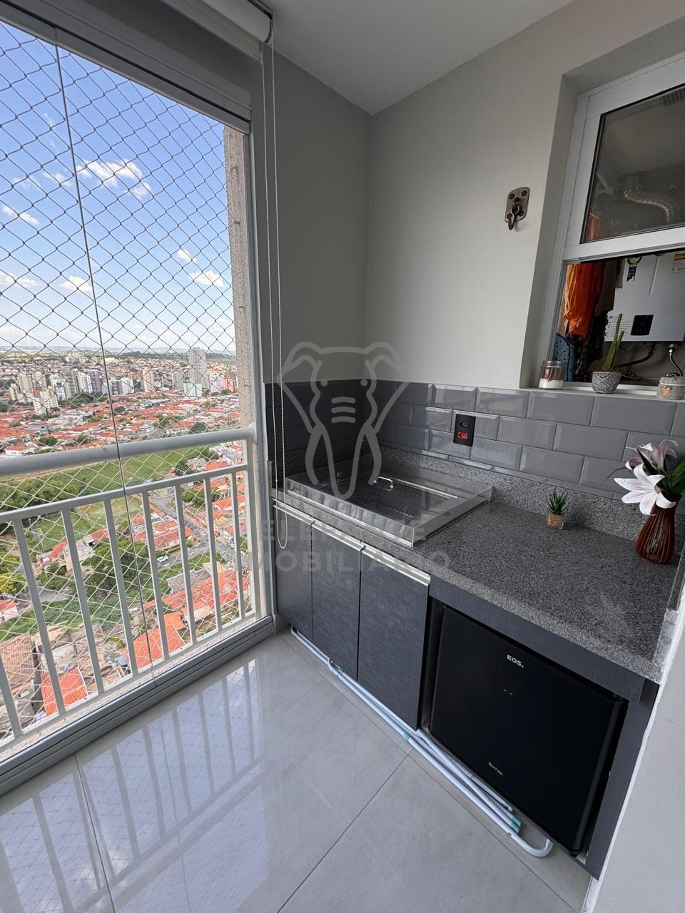 • Varanda com churrasqueira a gás e fechamento em vidro